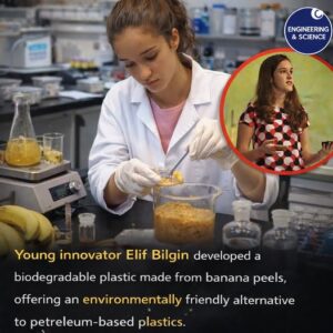 Elif Bilgin is a young Turkish innovator known for developing a biodegradable plastic alternative made from banana peels. She created this eco-friendly material as a student while researching ways to reduce the harmful effects of petroleum-based plastics on the environment. Traditional plastics take hundreds of years to break down and contribute to pollution, climate damage, and waste management problems.