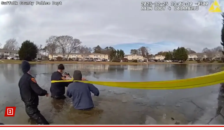 After numerous failed attempts, as Tayvion was freezing in the blistering cold water, Sgt. Santillo decided to take matters into his own hands and bear-crawled across the cracking ice to the child.