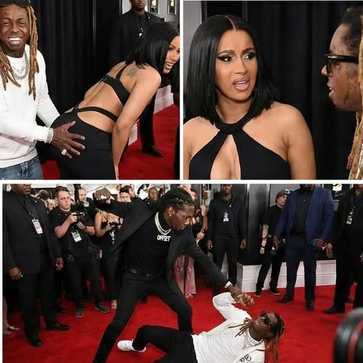 Cardi B, the undisputed Queen of Bronx, arrived looking like a million dollars in a custom schiaparelli gown. But the night didn’t end with trophies—it ended with a knockout. In a sequence of events that feels more like a Scorsese film than an awards gala, Cardi’s new mystery boyfriend—who has been keeping a low profile until now—turned the red carpet into a boxing ring, with legendary rapper Lil Wayne on the receiving end of his fury.