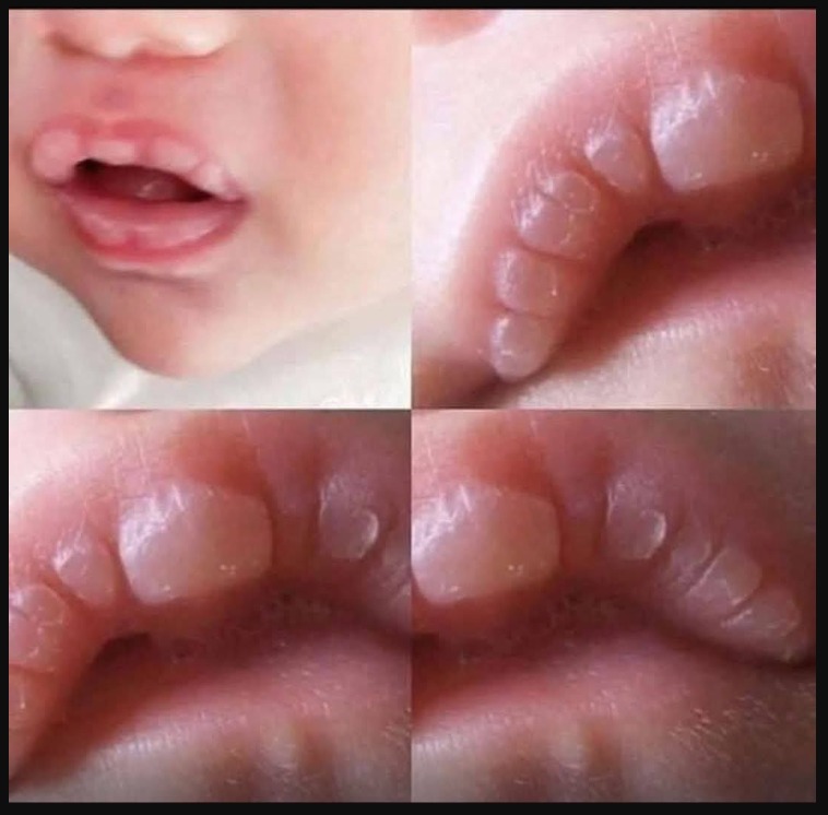 Oral thrush causes white blisters on your baby’s lips. The white patches are also inside the mouth on the tongue, cheeks, and roof of the mouth. They look like cottage cheese or milk and can make it hurt to suck or swallow. This is caused by an overgrowth of yeast.