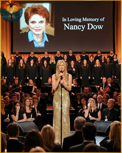 Last night, under soft lighting and in near silence, Aniston stepped onto a stage not as one of Hollywood’s most recognizable stars, but as a daughter carrying the weight of memory and loss. She delivered a deeply emotional rendition of “Somewhere Over the Rainbow” in honor of her late mother, Nancy Dow — a moment that quickly resonated far beyond the room where it took place.